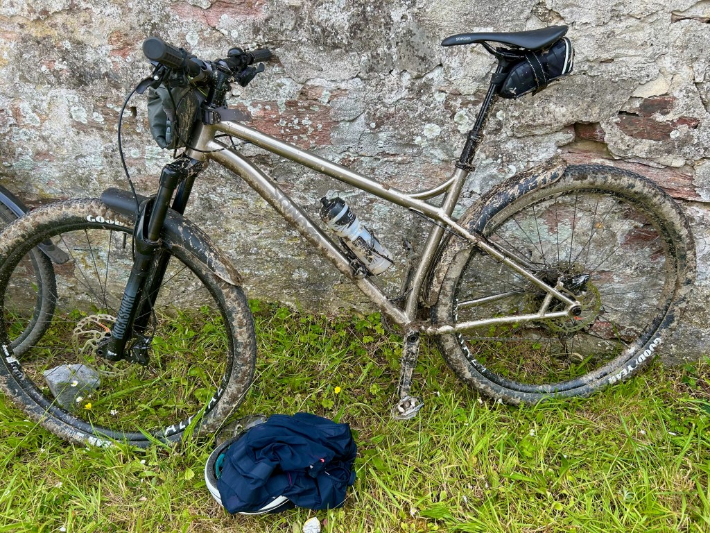Lung busting, handlebar fighting, knee crunching. I can hear the ragged breath of the four riders behind me unable to get past on a track just wider than my bars. Brambles hang down from the trees ripping at arms and legs. A slippery, stone slithering, rocky path rising steeply through some alder, birch and sycamore woods. Pioneer trees on an industrial wasteland, the legacy of the wealth extracted from the hillside in the zenith of 19th century mining. The average angle is over 10% with steps of 16-18% and the rain of the last few days has slicked the surface and piled loose chips of rock just where you want your tyres to go forcing me into the eroded gully in the middle of the path. Welcome to the 2025 Mines and Mineral Railways off road audax.